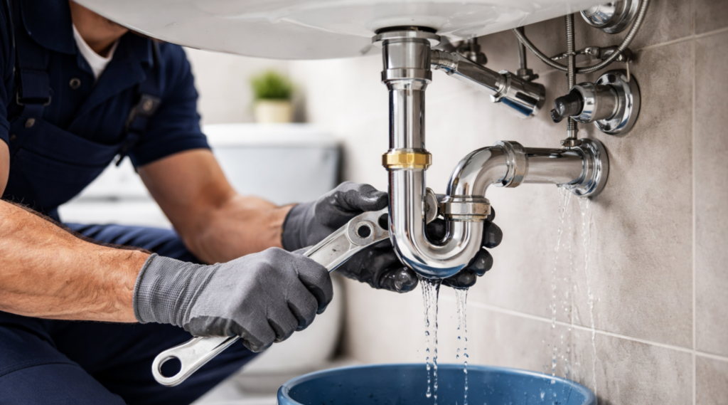 Fuite d’eau, canalisation bouchée, remplacement d’équipements, installation sanitaire et entretien plomberie.